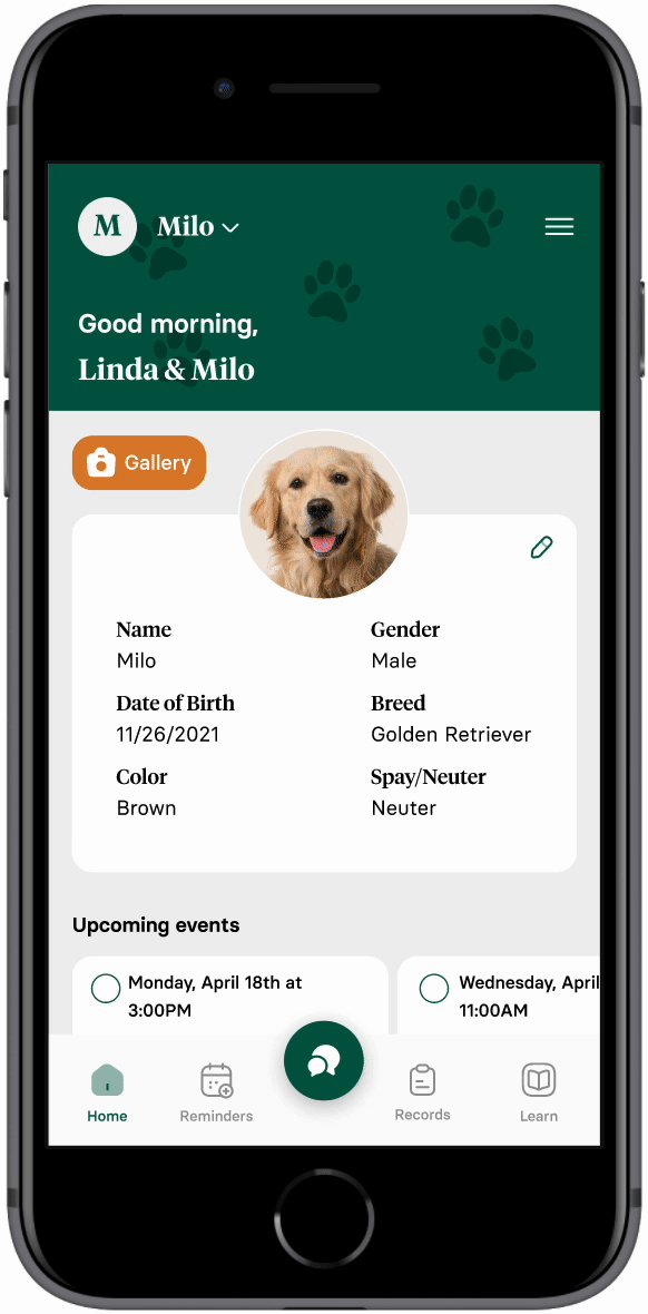 Say hello to Shake! Shake is a mobile app designed to help pet owners track their pet's health. You can keep all of your pet's health information in one place, including vet appointments, medication schedules and more. Our user-friendly interface makes it easy to input and access your pet's information, and our reminders ensure that you never miss an important event. With Shake, you can keep your furry friend healthy and happy.